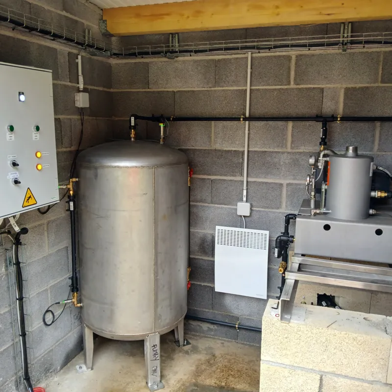 Au site de pompage de Fumay, l’implantation des puits avec des conduites siphonnées nécessite de maintenir constamment une dépression. Deux pompes à v