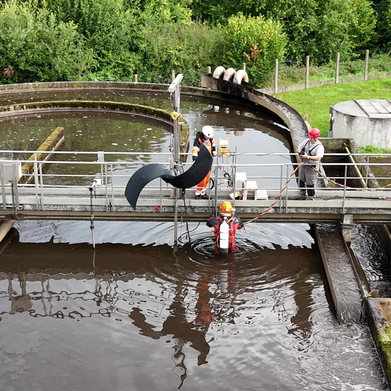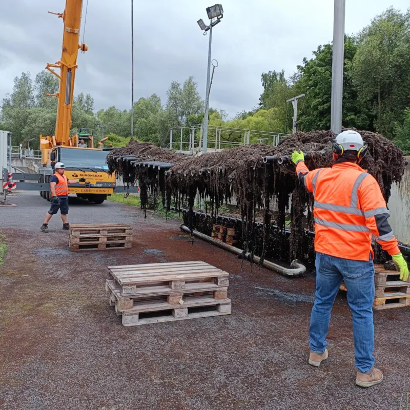 En cette fin août, des plongeurs scaphandriers sont venus à Givet effectuer des opérations de réparation subaquatiques dans la station de traitement d